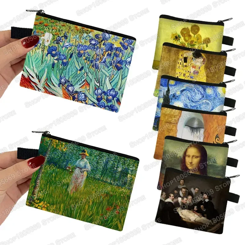 Van Gogh pintura al óleo noche estrellada/monedero David/Mona Lisa estampado 3D hombres mujeres cartera ID tarjeta de crédito bolsa pequeñas monedas