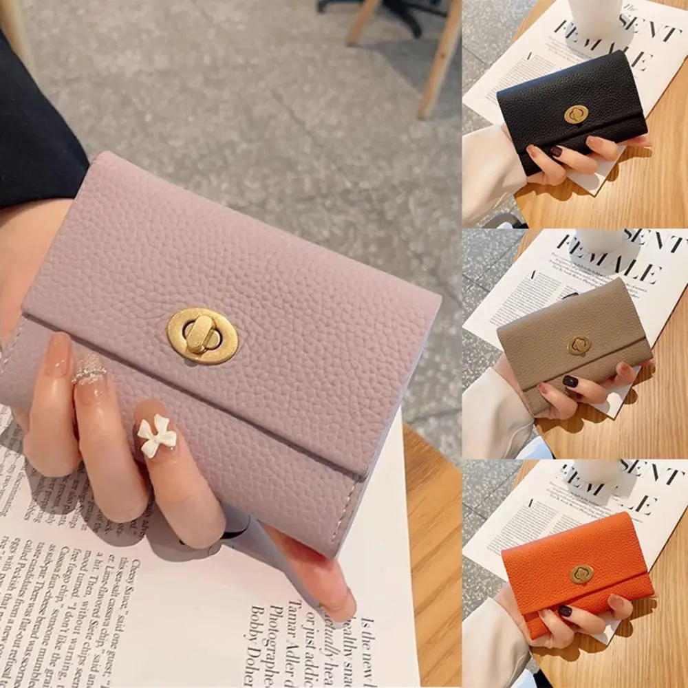 Monedero corto de 2 pliegues de gama alta, billetera estilo Retro INS, monedero, tarjetero de cuero PU, regalo para niñas y estudiantes