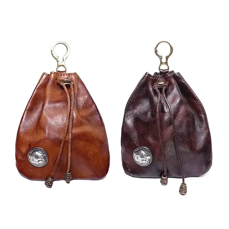 Monedero de cuero de vaca superior para monedas, monedero Vintage para hombre, bolsa pequeña hecha a mano, monedero con cerrojo cuadrado, Mini bolso