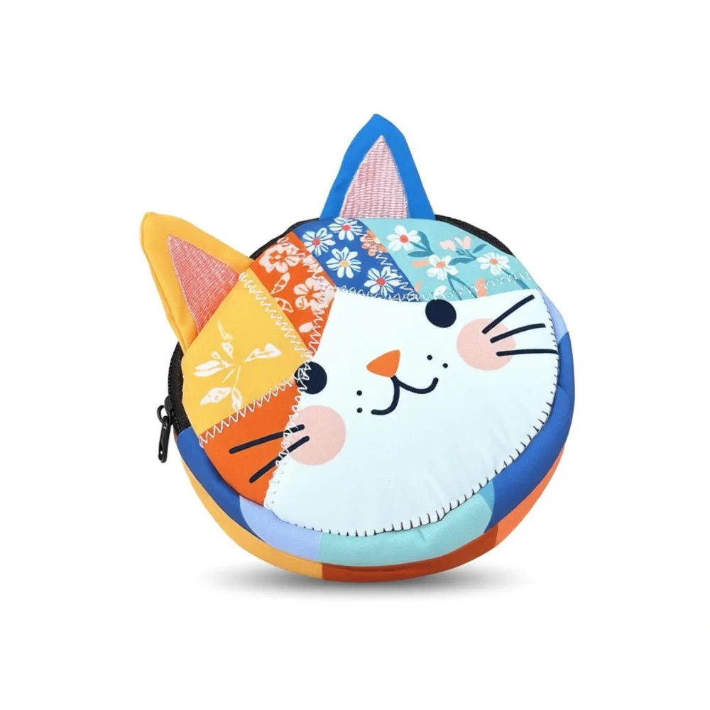 Monedero bonito de patchwork con diseño de gato y cremallera, bolsa de maquillaje, bolsa de almacenamiento de viaje para mujeres y niñas