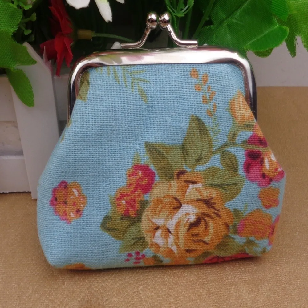 Mini monedero de moda, cartera de mano con cerrojo de Metal de lona, bolsa de cambio con estampado Floral rosa para mujer