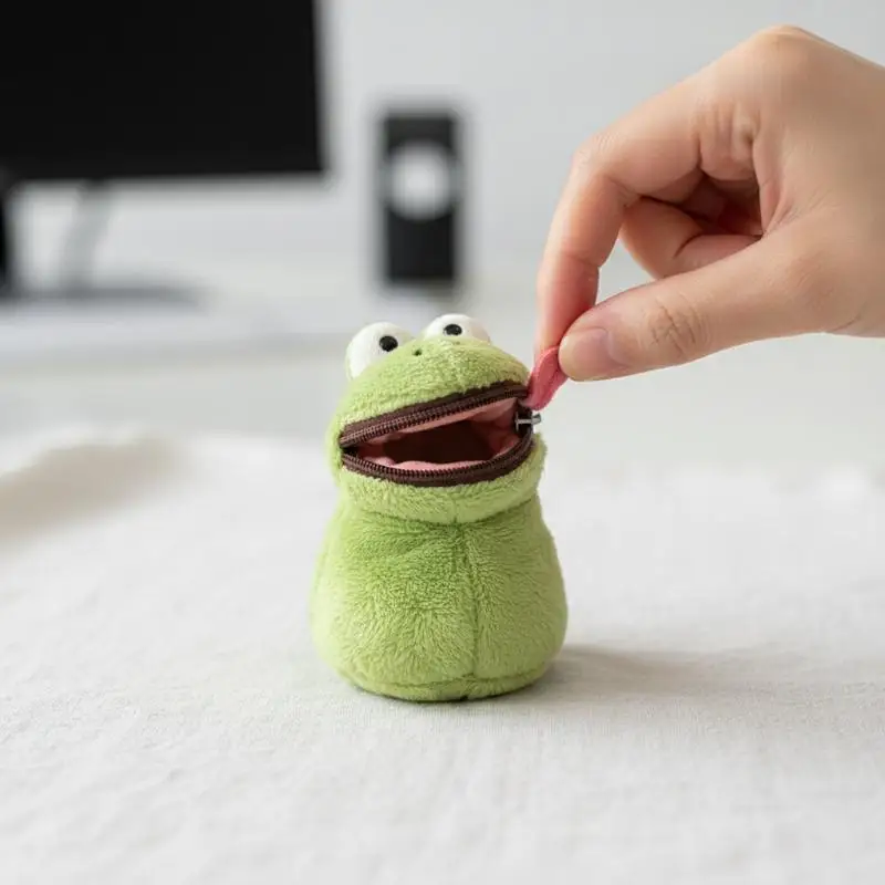 Monedero de Peluche con Diseño de Ranas Adorables, Bolsa de Almacenamiento Portátil para Audífonos y Lápiz Labial, Regalo de Cumpleaños Kawaii para Parejas