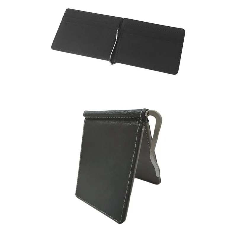 Billetera de piel corta de Color sólido para hombre, monederos de cuero Pu, Clips de dinero, billetera delgada sólida, monederos