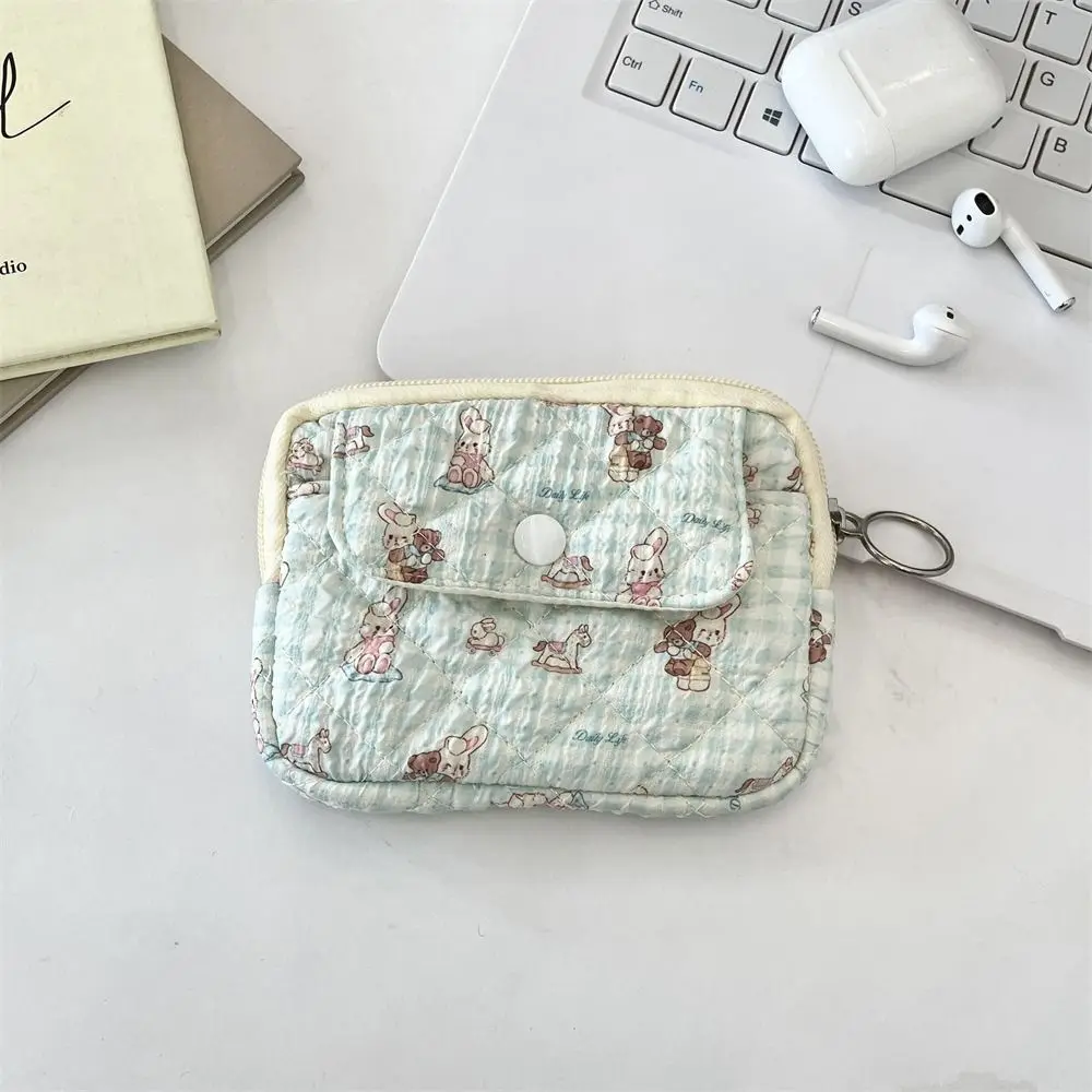 Mini monedero de lona con estampado de dibujos animados, bolso pequeño multifuncional de estilo coreano para lápiz labial, tarjetero, bolsa de embalaje de joyería