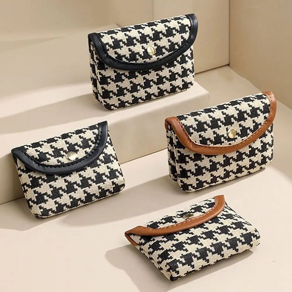 Monedero Corto de Lona con Cuero Sintético, Diseño a Cuadros, Doble Capa, Estilo Coreano, Porta Tarjetas, Mini Bolsa para Lápiz Labial, Uso Diario