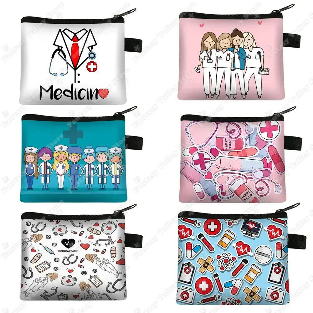 Monedero bonito para enfermera, estetoscopio médico, jeringa, billetera, dijes, gorro de enfermera, monedero de Hospital, tarjetero de identificación, regalo