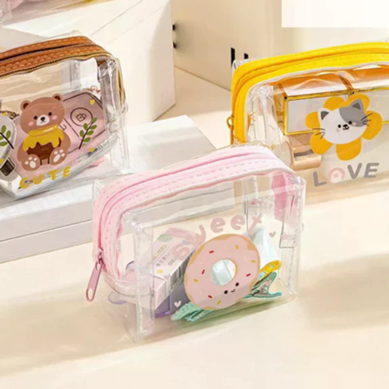 Mini monedero transparente de PVC, bolsa impermeable para auriculares, bolsa de lápiz labial de animales de dibujos animados, funda para llaves portátil