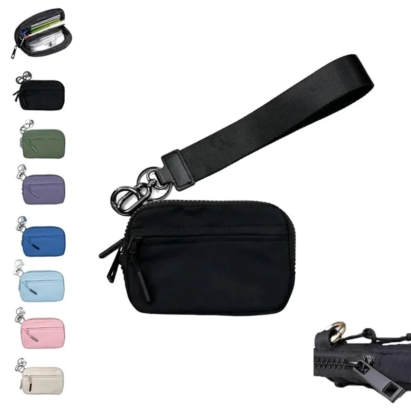 Con monedero con cremallera para la muñeca, bolso de viaje informal para mujer, cartera pequeña de nailon impermeable, tarjetero multifuncional