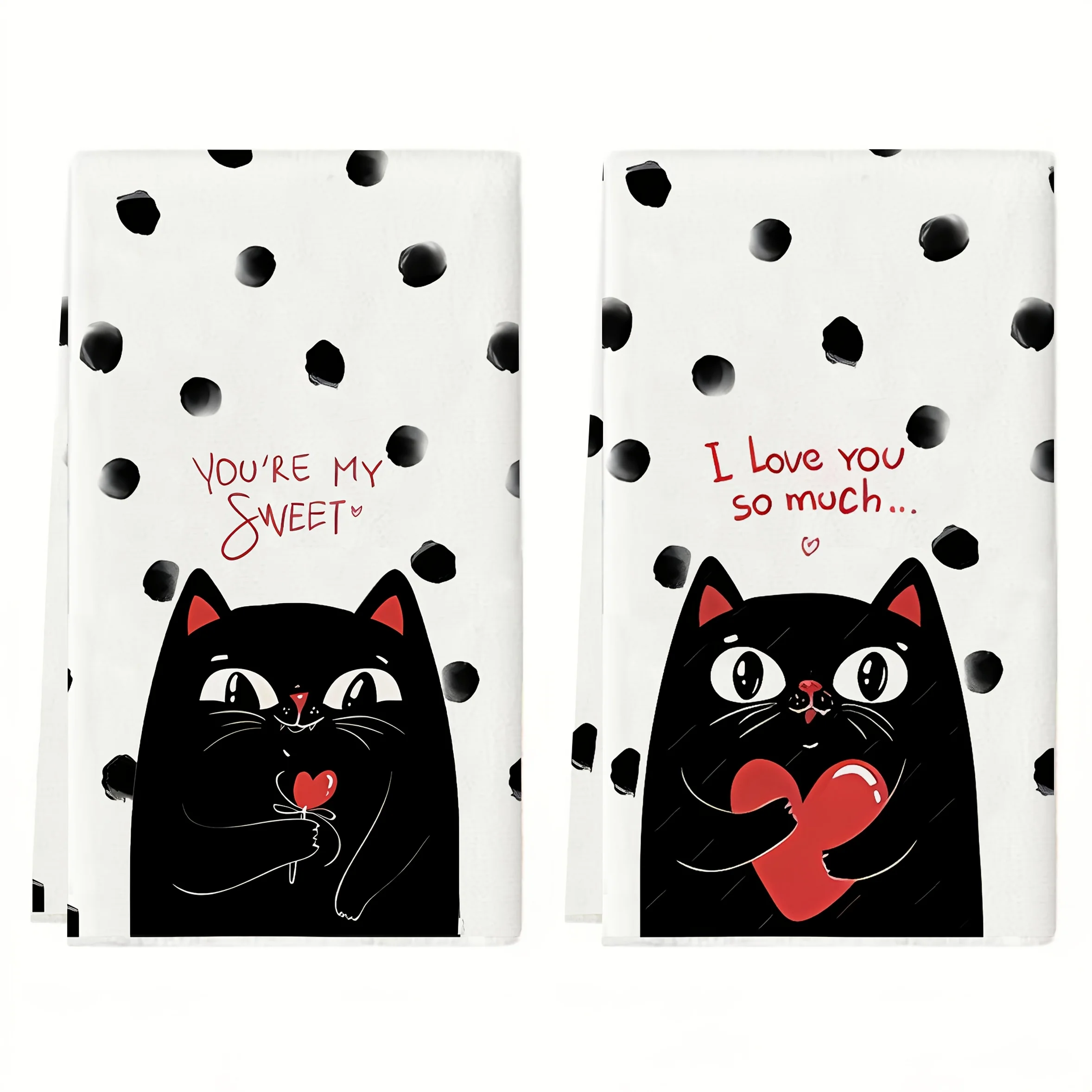 Juego de 2 piezas de toallas de cocina para gatitos, toallas para platos, toallas de mano, toallas de mano decorativas navideñas, paño de secado suave y absorbente, decoración de cocina, decoración de mesa, suministros de cocina, decoración del hogar