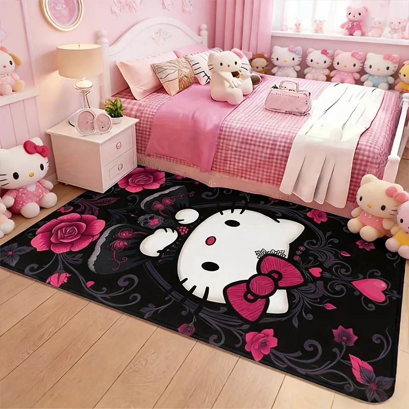 1 alfombra de felpa Sanrio Hello Kitty, lavable, estilo dibujos animados, adecuada para decoración de dormitorio y sala de estar, con diseño rosa R