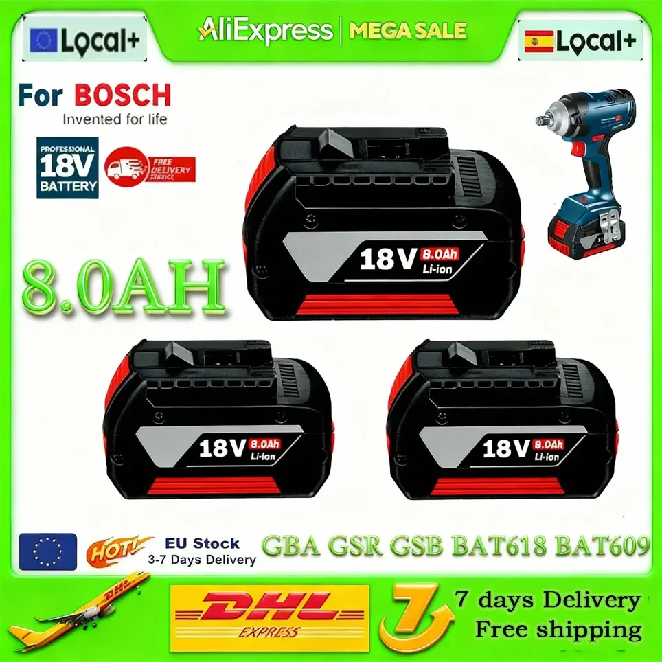 Original para Bosch 18V batería 8.0Ah taladro eléctrico 18V 6.0Ah batería recargable de iones de litio, BAT609,, BAT618, BAT618G, BAT614