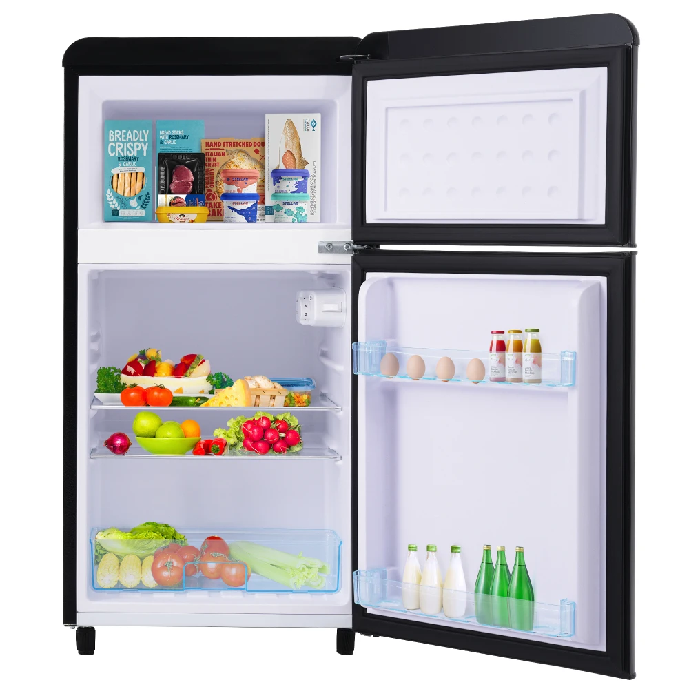 Frigorífico retro, frigorífico de doble puerta superior e inferior, capacidad total de 72 litros, con espacio de congelación de 21 litros, 120 kWh/año