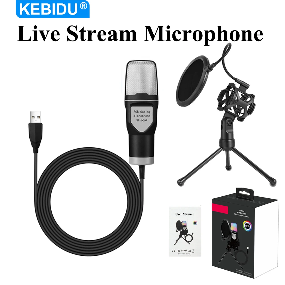 KEBIDU Kits de Micrófono USB Profesional para Transmisión en Vivo, Micrófono con Cable para Juegos, Podcast, Grabación en Estudio y Laptop