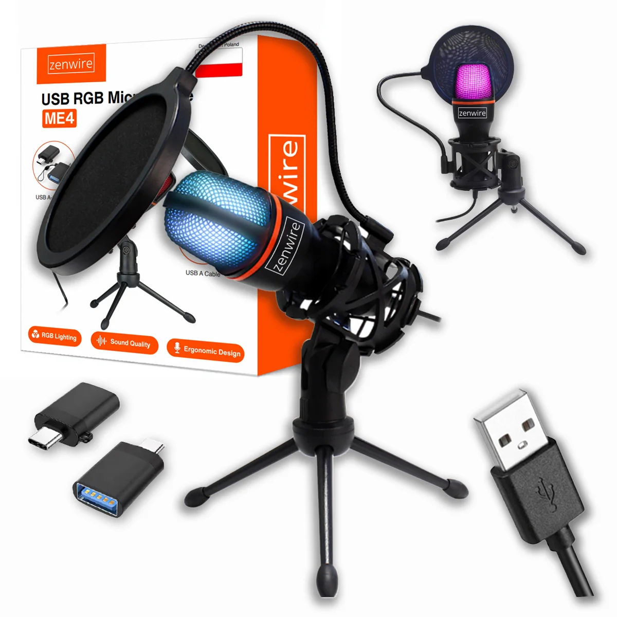Micrófono capacitivo de estudio para juegos de PC, RGB, USB-C, USB 3.0, Zenwire ME4
