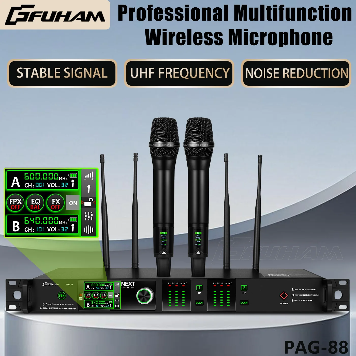 Micrófono Profesional FUHAM PAG-88, Sistema de Micrófono Inalámbrico UHF de Doble Canal, Adecuado para Presentaciones Previa a la Boda