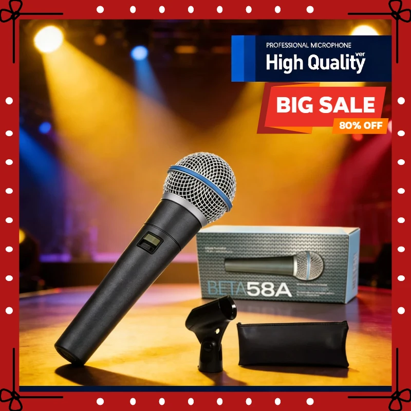 Micrófono Vocal Dinámico Profesional BETA 58A en Oferta, Micrófono Cardioide con Cable para Sonido en Vivo, Grabación en Estudio, Karaoke y Fiestas