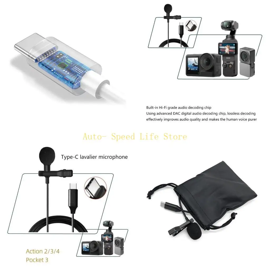 02DA Micrófono Lavalier Grabación vídeo con clip Entrevistas para Pocket 3 Action 4/3/2