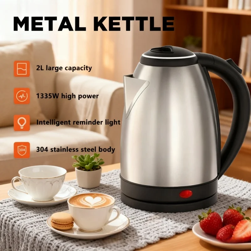 Hervidor eléctrico de acero inoxidable de 2,2 L, hervidor de agua de ebullición rápida de 1500W, bote de agua multifuncional para hacer té y café en el hogar