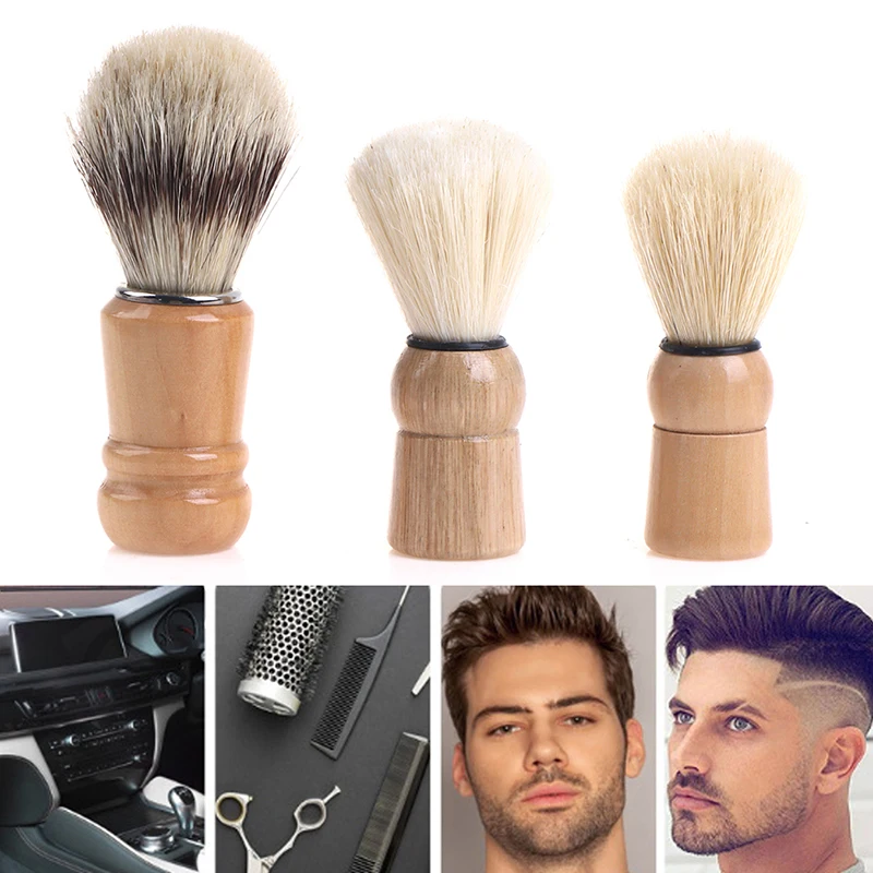 Cepillo de afeitar de pelo de tejón Natural para hombre, salón de barbería, aparato de limpieza de barba Facial, herramienta de afeitado, cepillo de afeitar con mango de madera