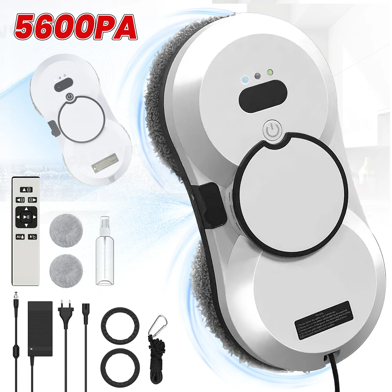 Robot de Limpieza de Ventanas de 5600 Pa, Aspiradora Inteligente con Pulverización Automática y Anti-Caídas, 3 Modos, Silencioso de 65 dB, con Cuerda de Seguridad para Hogar/Oficina