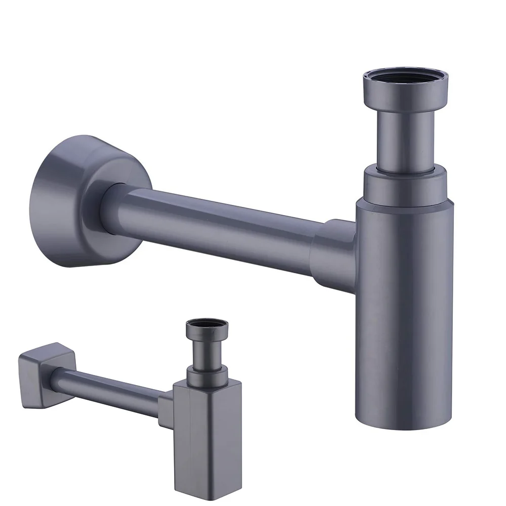 Trampa para botellas Trampas para lavabo decorativas redondas/cuadradas Accesorio para lavabo de baño Desagüe de residuos para fregadero Kit de trampa P de altura ajustable - Gris