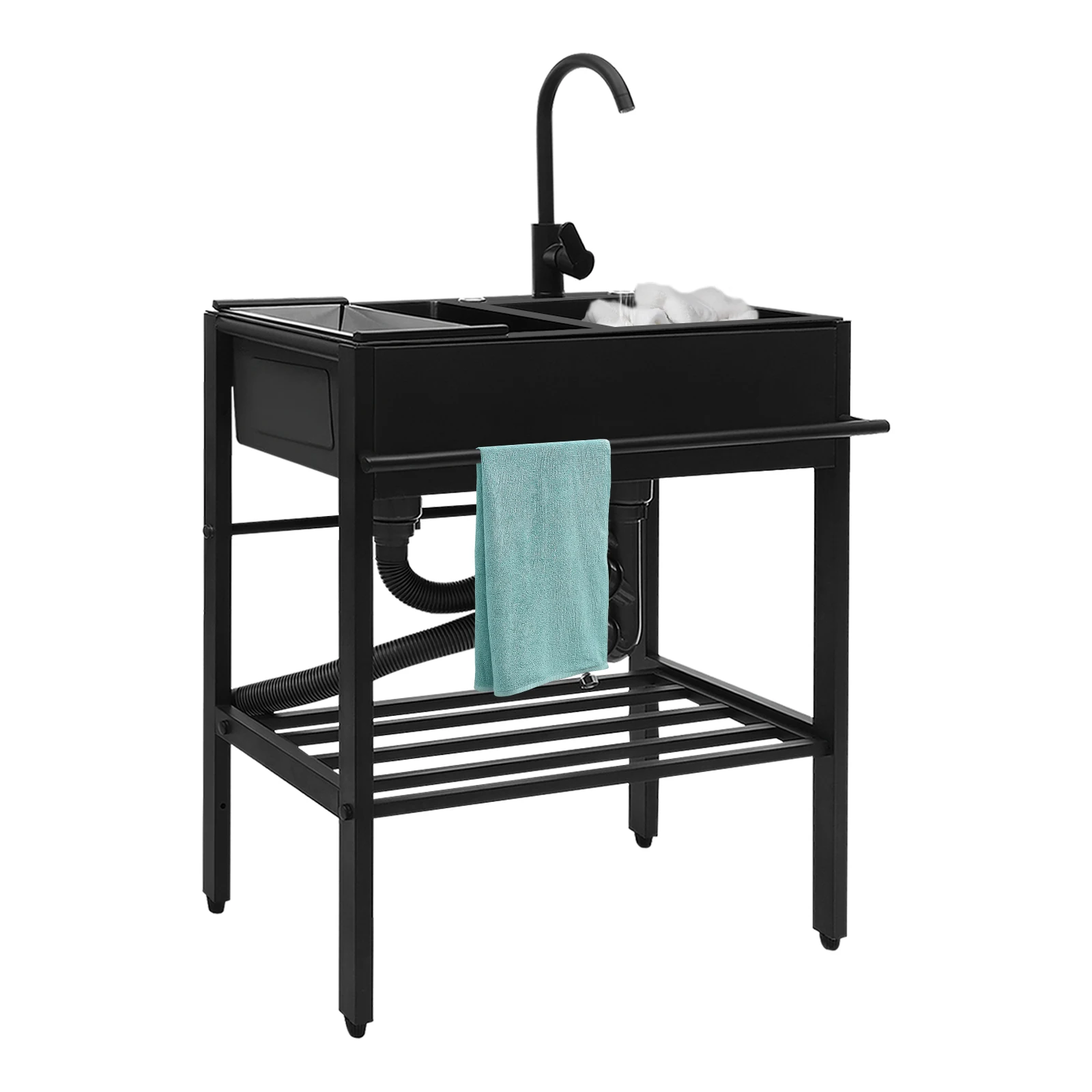 Juego de fregadero de cocina independiente de acero inoxidable, bañera de lavandería con 360 ° Grifo giratorio Pies ajustables y lavabo grande