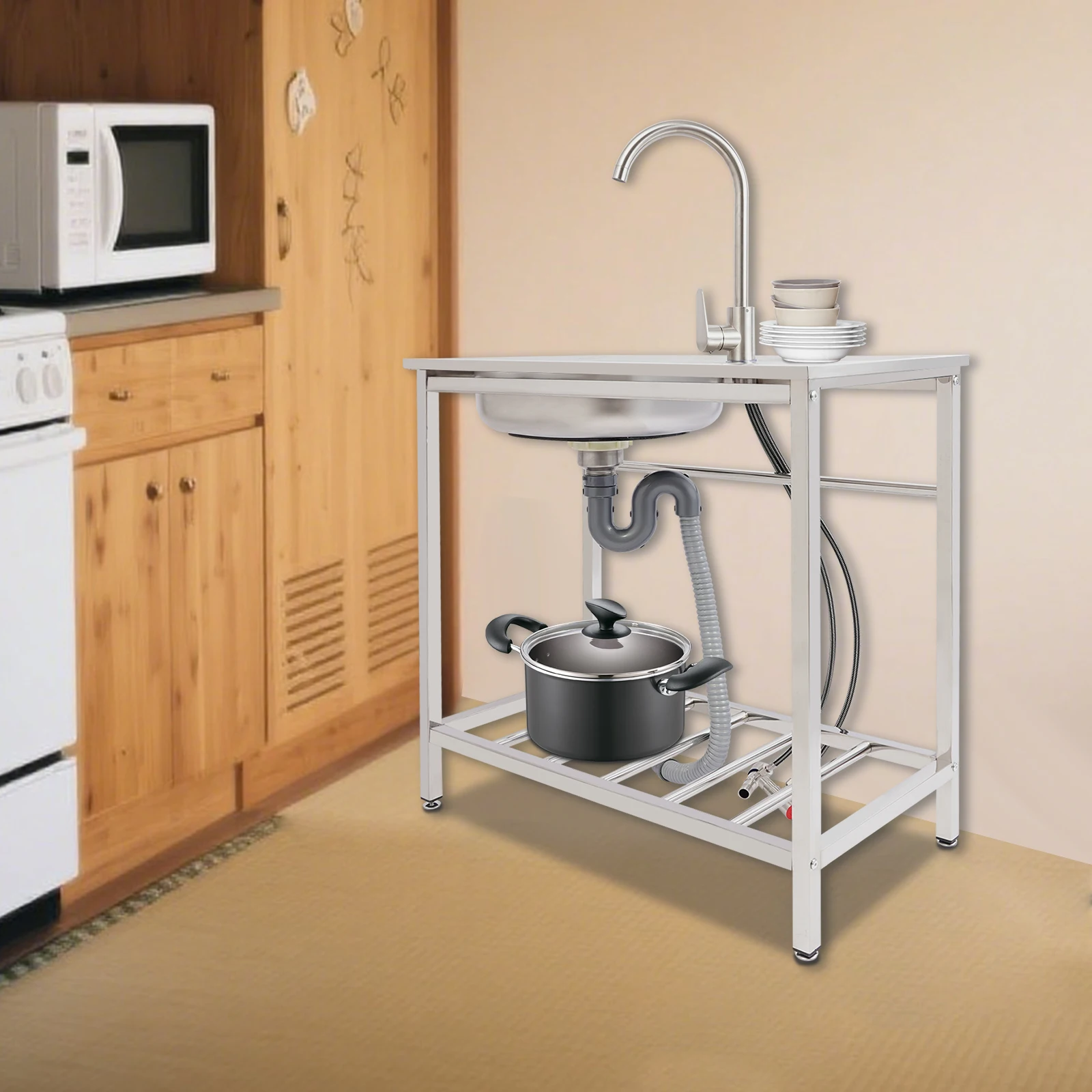 Fregadero Independiente de Acero Inoxidable Electrochapado 201 | Capacidad de Carga de 88.18 Libras, Gran Recipiente Profundo, 360 ° Grifo, Juego Completo, Plateado Moderno