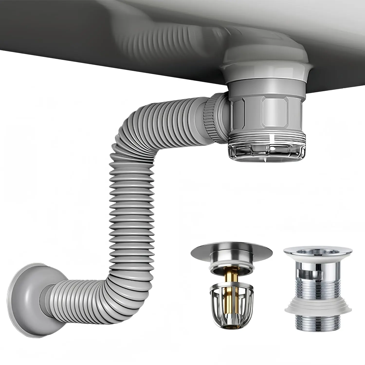 Juego de escurridor de fregadero de cocina de acero inoxidable 304, tubo de bajada antiolor, cabezal de drenaje para lavabo, accesorios, fregadero individual doble