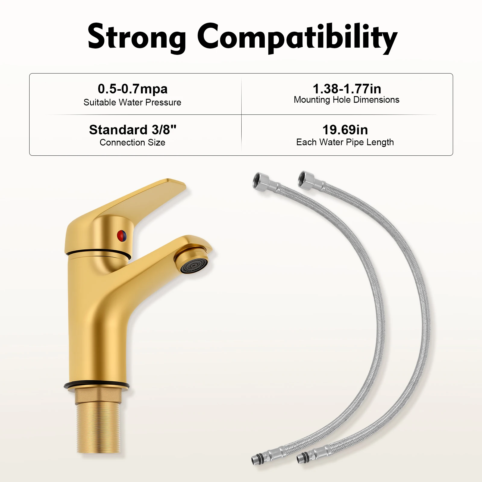 Grifo Monomando Dorado para Lavabo, Grifo de Baño con Grifo para Lavabo, Agua Fría y Caliente con Salida