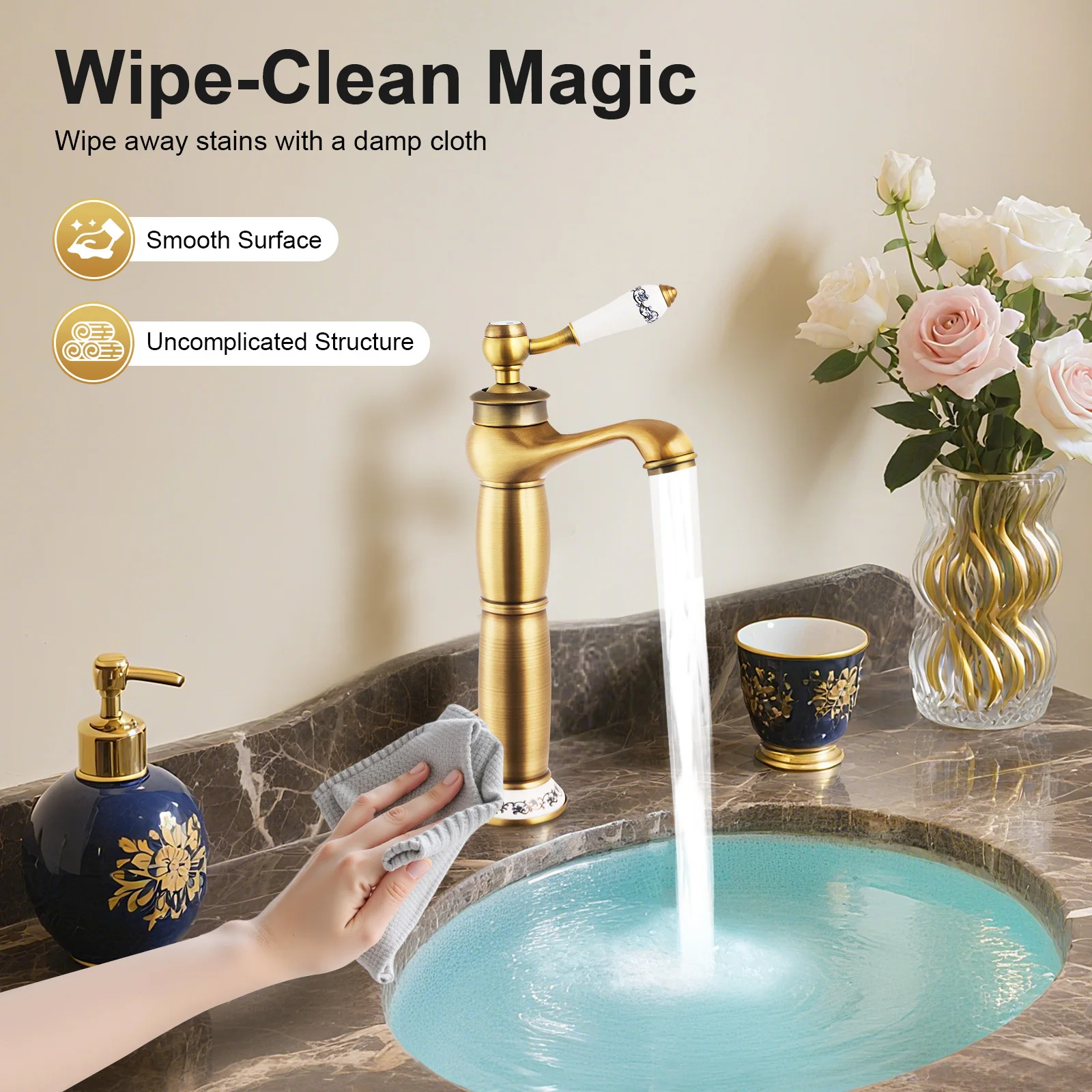 Grifo de lavabo dorado retro, grifo de baño, latón antiguo alto, grifo mezclador alto y de una sola palanca, grifo de baño antiguo, grifo de lavabo