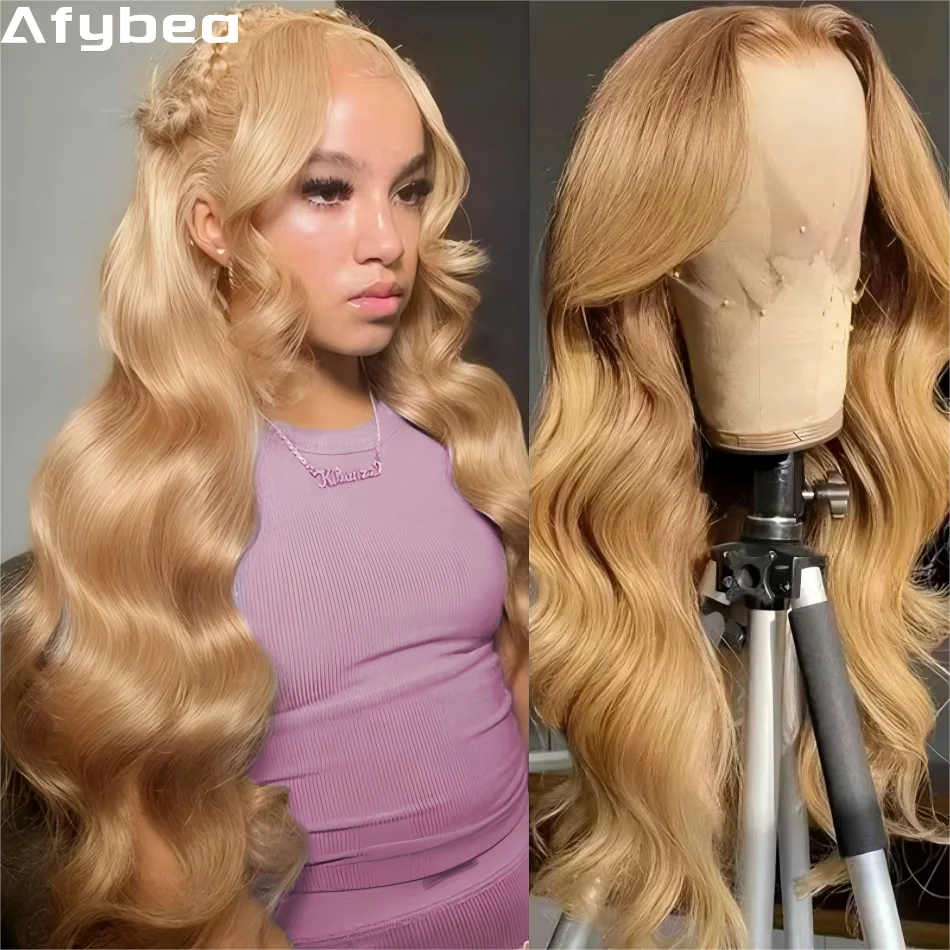 Ombre Ash Honey Blonde13x6 HD peluca Frontal de encaje transparente cabello humano 13X4 peluca de cabello humano Frontal de encaje con raíz marrón