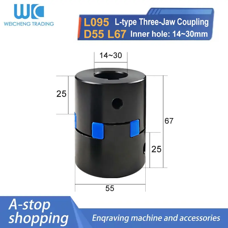 Acoplamiento de tres mordazas tipo L, diámetro 14/15/16/17/18/19/20/22/24/25/28/30mm, L095, D55, L67