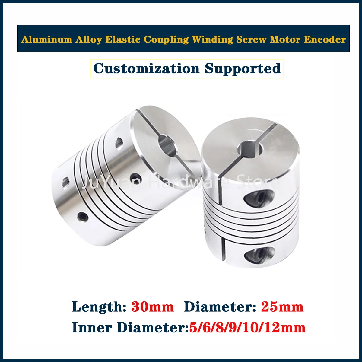 Acoplamiento elástico de aleación de aluminio D25L30, Compatible con tornillo de bobinado, codificador de Motor, orificio interior de 5mm/6mm/8mm/9mm/10mm/12mm
