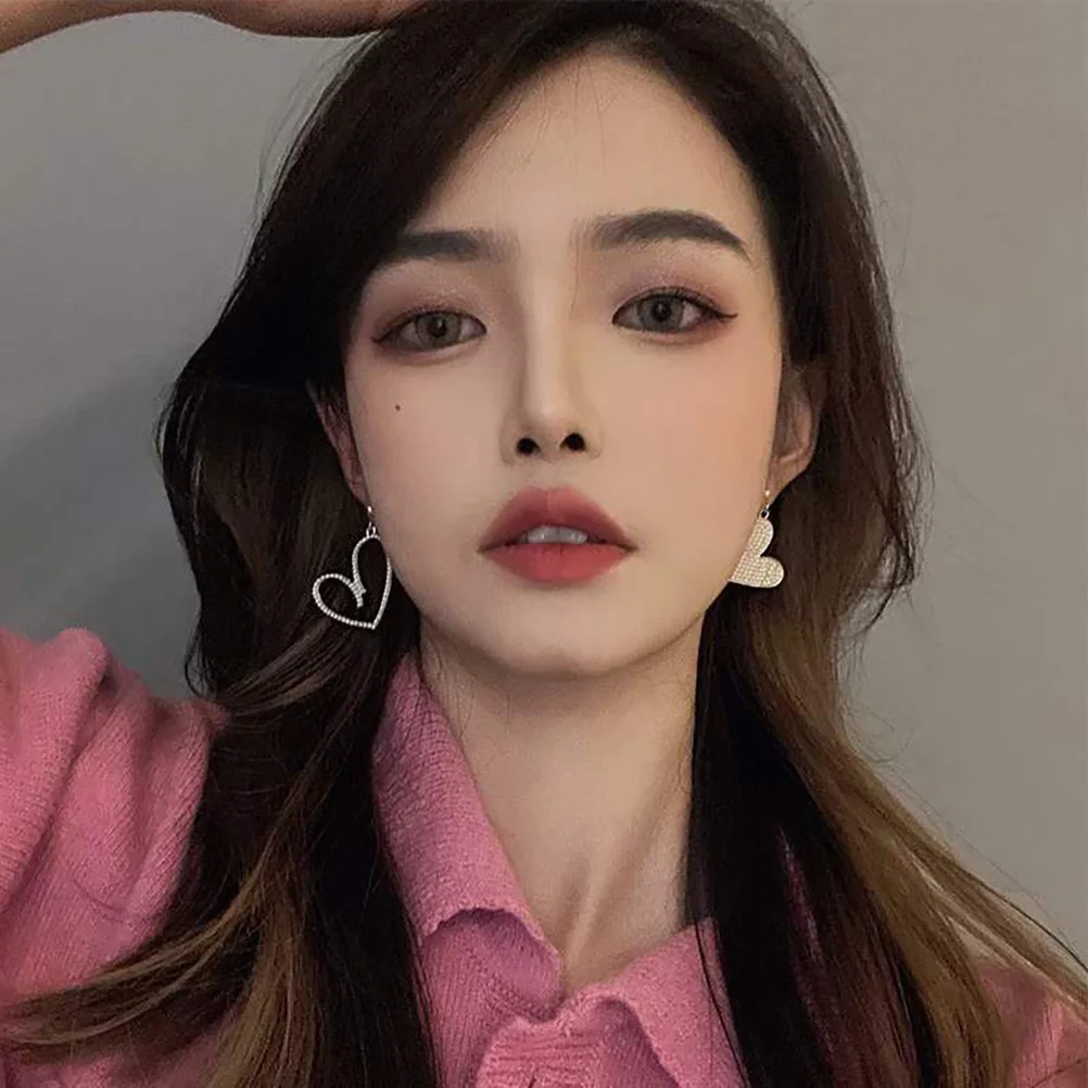 1 Par de Pendientes de Perlas en Forma de Corazón con Incrustaciones de Diamantes de Imitación, Aleación, Colgantes, para Mujer, Joyería de Moda, Regalo para Novia, Hermana