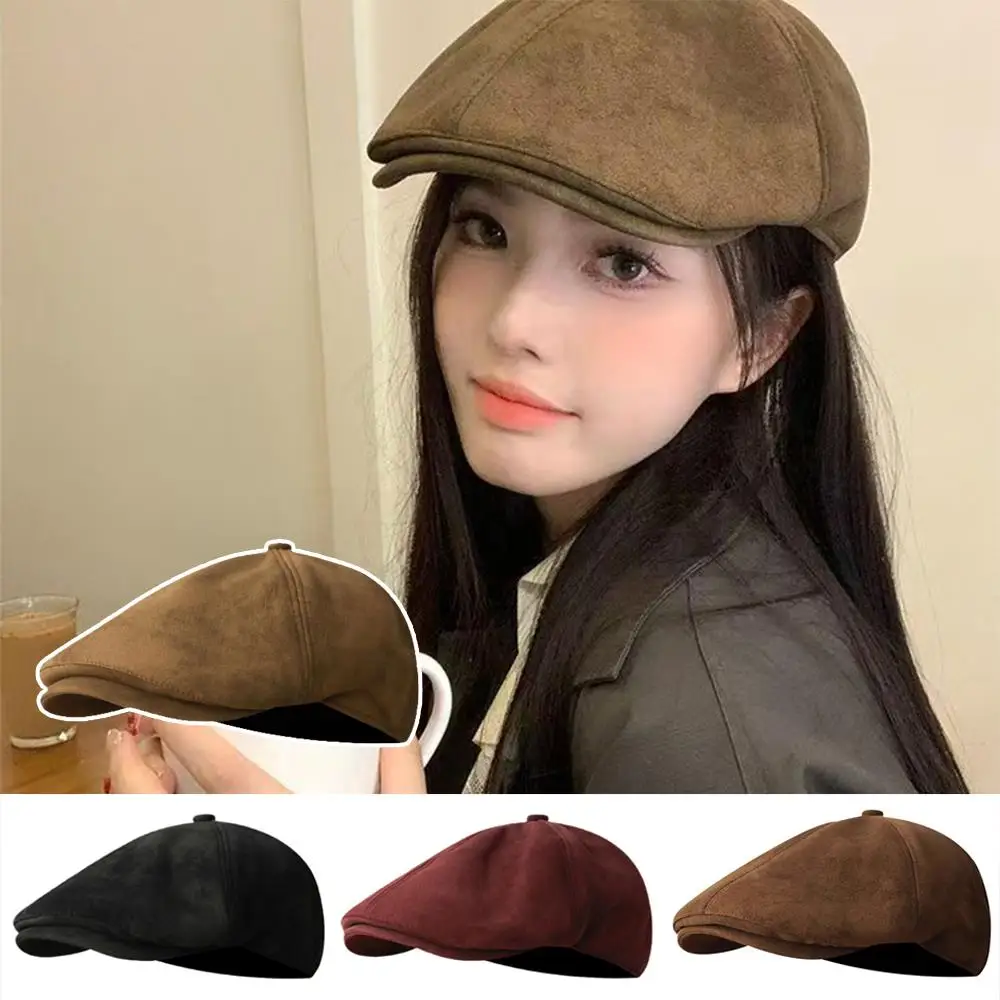 Boina informal Retro para hombre y mujer, gorro de bola cálido de estilo británico, accesorios, gorra de vendedor de periódicos, gamuza descolorida, moda de otoño e invierno