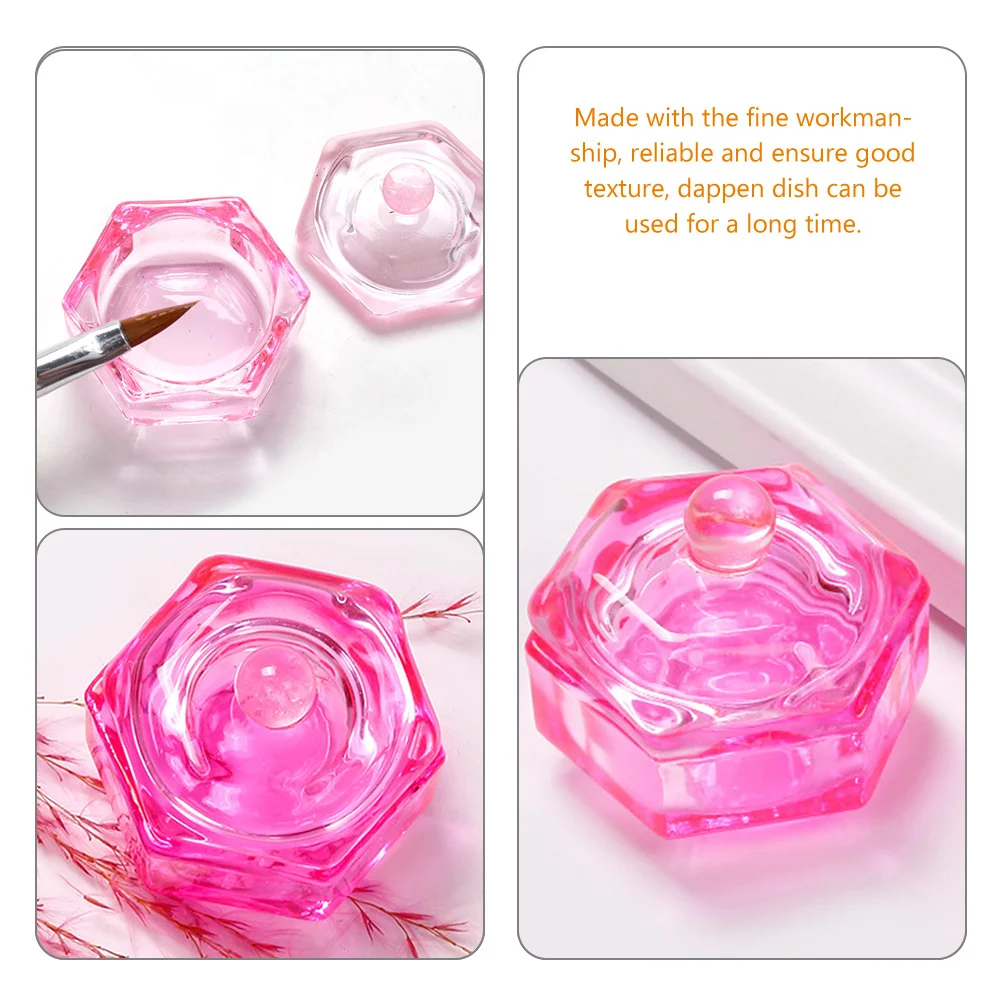 Plato Dappen de cristal rosa para uñas acrílicas, soporte de monómero líquido con tapa, tazón mezclador para decoración de uñas, herramienta de manicura, 2 uds.