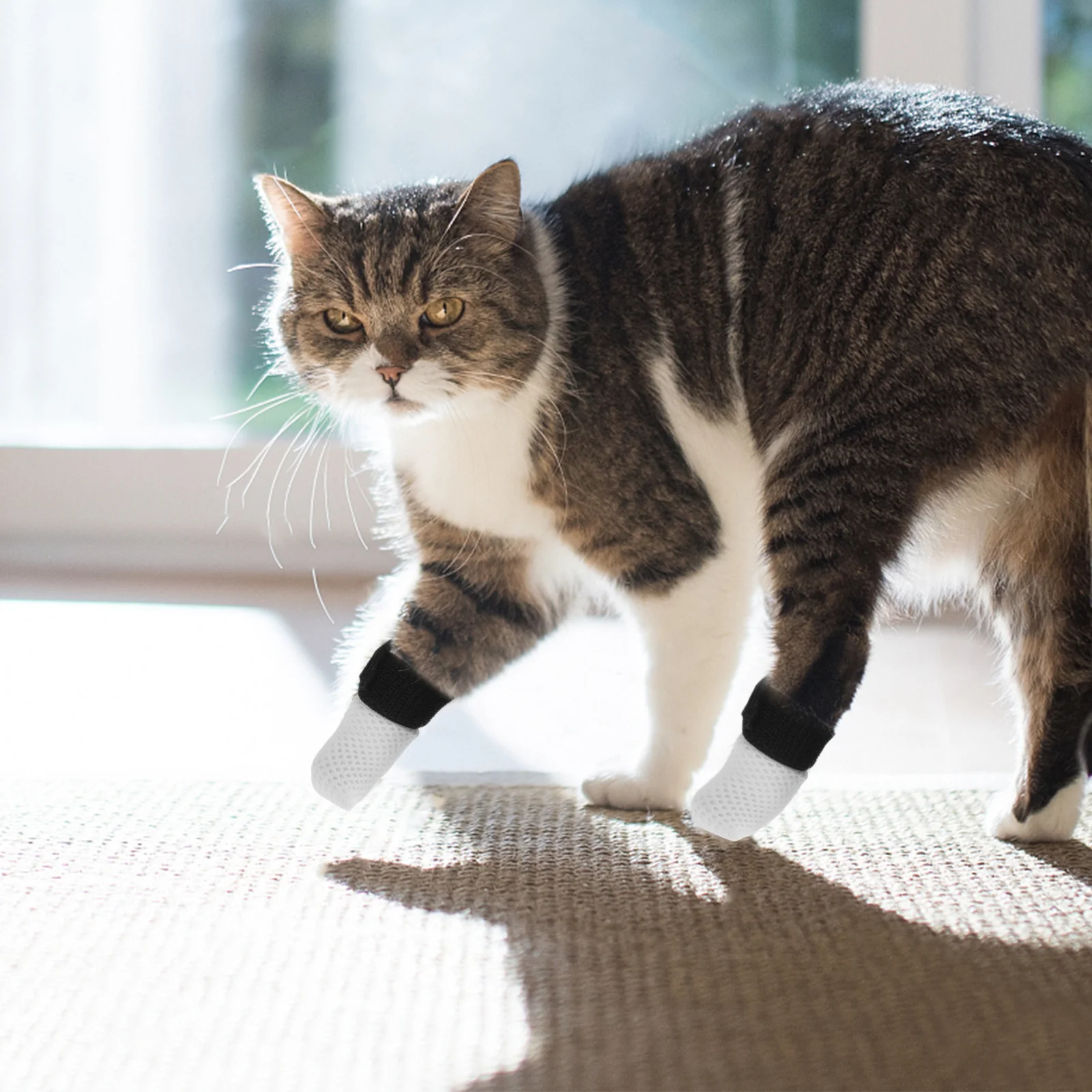4 Uds. De zapatos para gatos, cubiertas de malla transpirable, banda elástica ajustable, protege el suelo, mantener el calor, mangas de pata, gorros de garra, calcetines para gatos