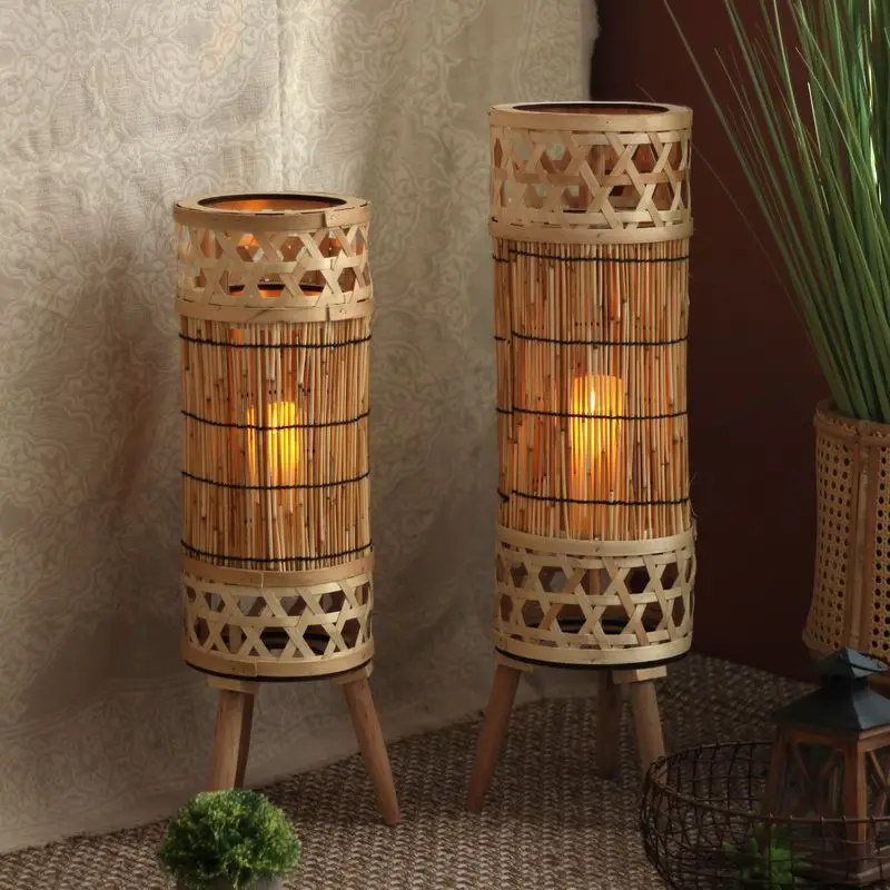 Vela de suelo Vintage de bambú, pantalla de lámpara, decoración de cafetería, restaurante, candelabro de luz ambiental, accesorios de fotografía