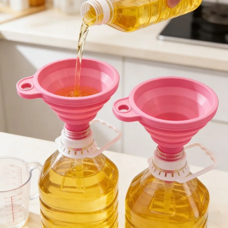 Juego de 3 Embudos de Silicona de Boca Ancha para Aceite, Vino, Mermelada, Transferencia de Líquidos, Gadget de Cocina, Herramienta Multifuncional para el Hogar, Grado Alimenticio