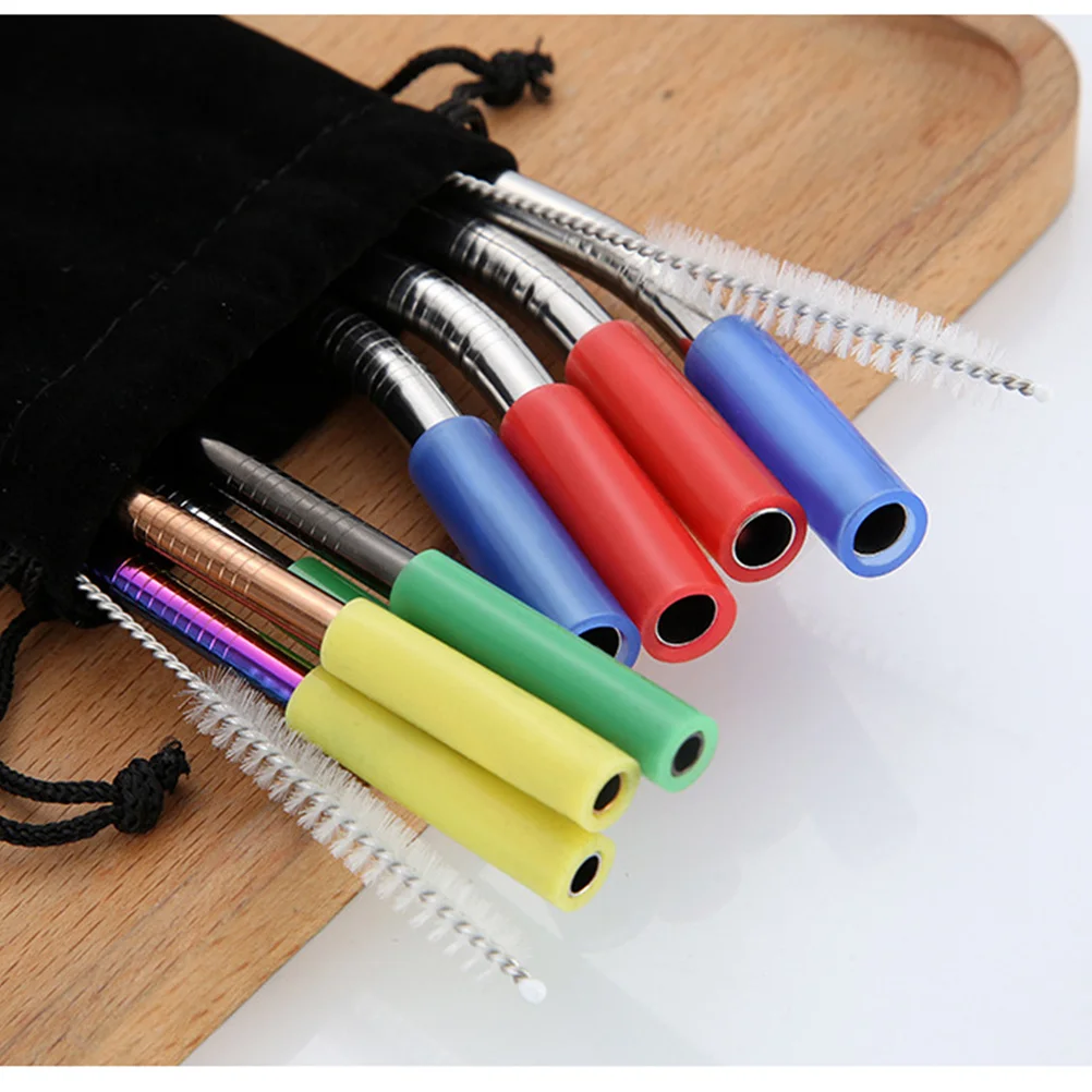 Pajitas para beber de acero inoxidable, juego ecológico reutilizable con tubos rectos curvos, bolsa de tela para cepillos para una salud, 37 Uds.