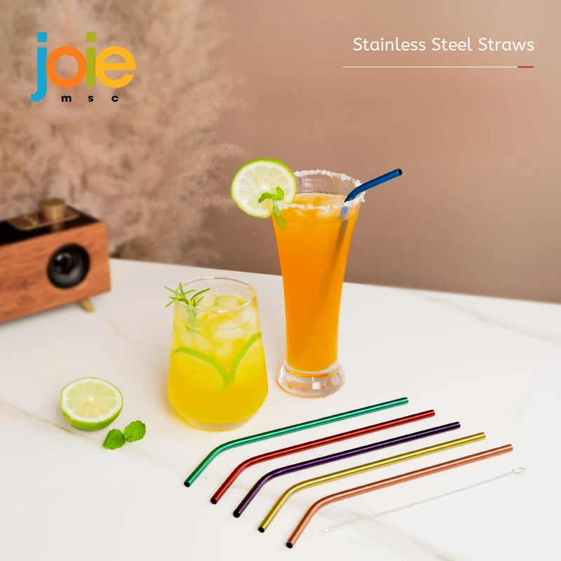 Joie Pajitas arcoíris Pajitas de acero inoxidable 6 piezas Pajitas flexibles reutilizables Pajitas elegantes de calidad alimentaria con cepillo de limpieza