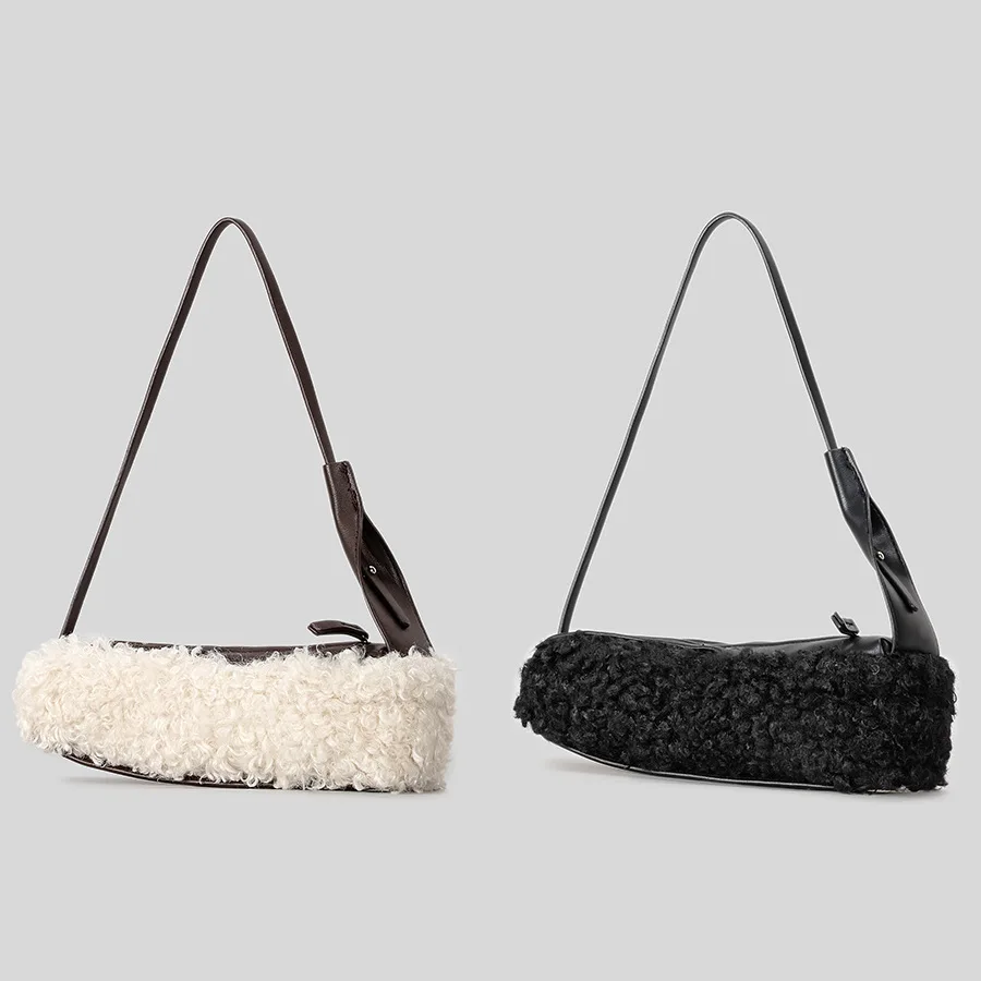 2025 nuevo bolso de mujer de terciopelo de cordero de otoño e invierno bolso baguette de moda nicho de gran capacidad estilo perezoso axila hombro ba