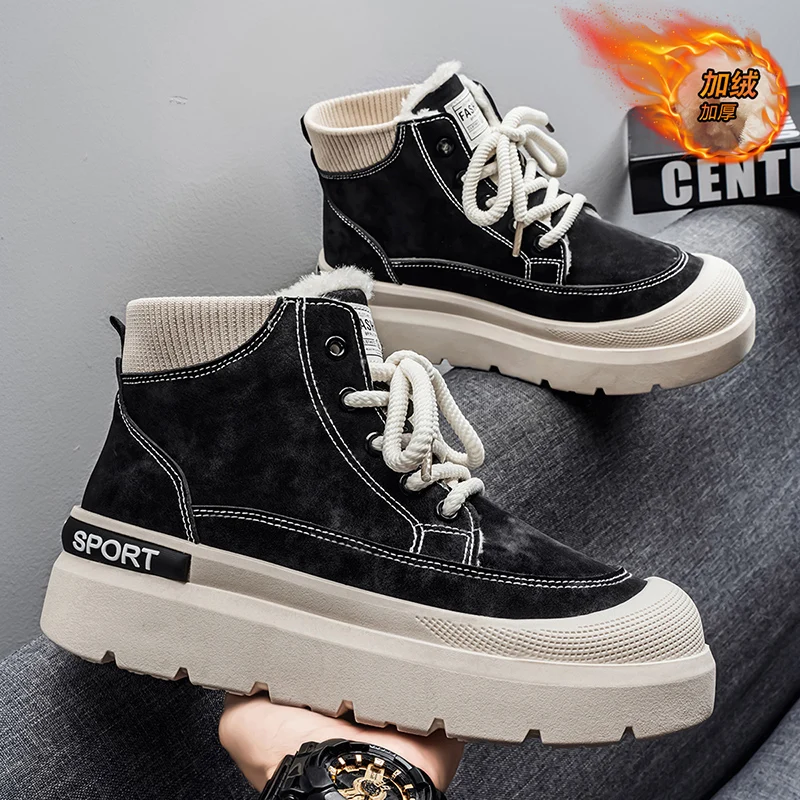 Botas altas de felpa a la moda para hombre, botas informales con plataforma para motocicleta, zapatos de calle para exteriores, botines para mantener el calor para hombre