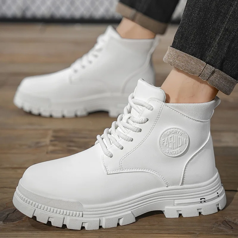 Botas blancas de estilo británico para hombre, botas de trabajo al aire libre de suela gruesa, duraderas, deportivas e informales
