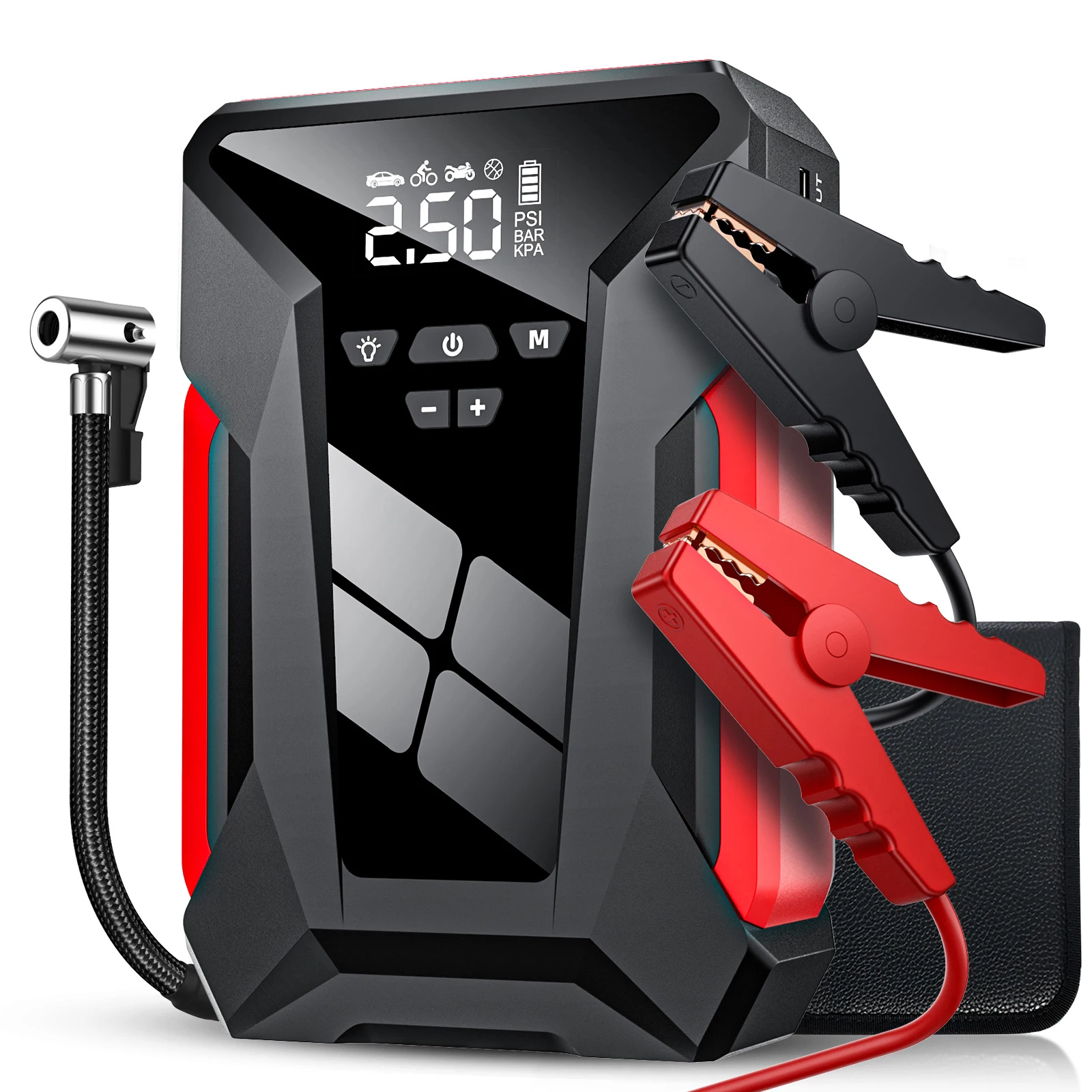 Arrancador de Coches de 28000mAh con Compresor de Aire de 150PSI, Potenciador de Batería de Emergencia 4 en 1 de 1200A y Inflador de Neumáticos para Vehículos de 12V