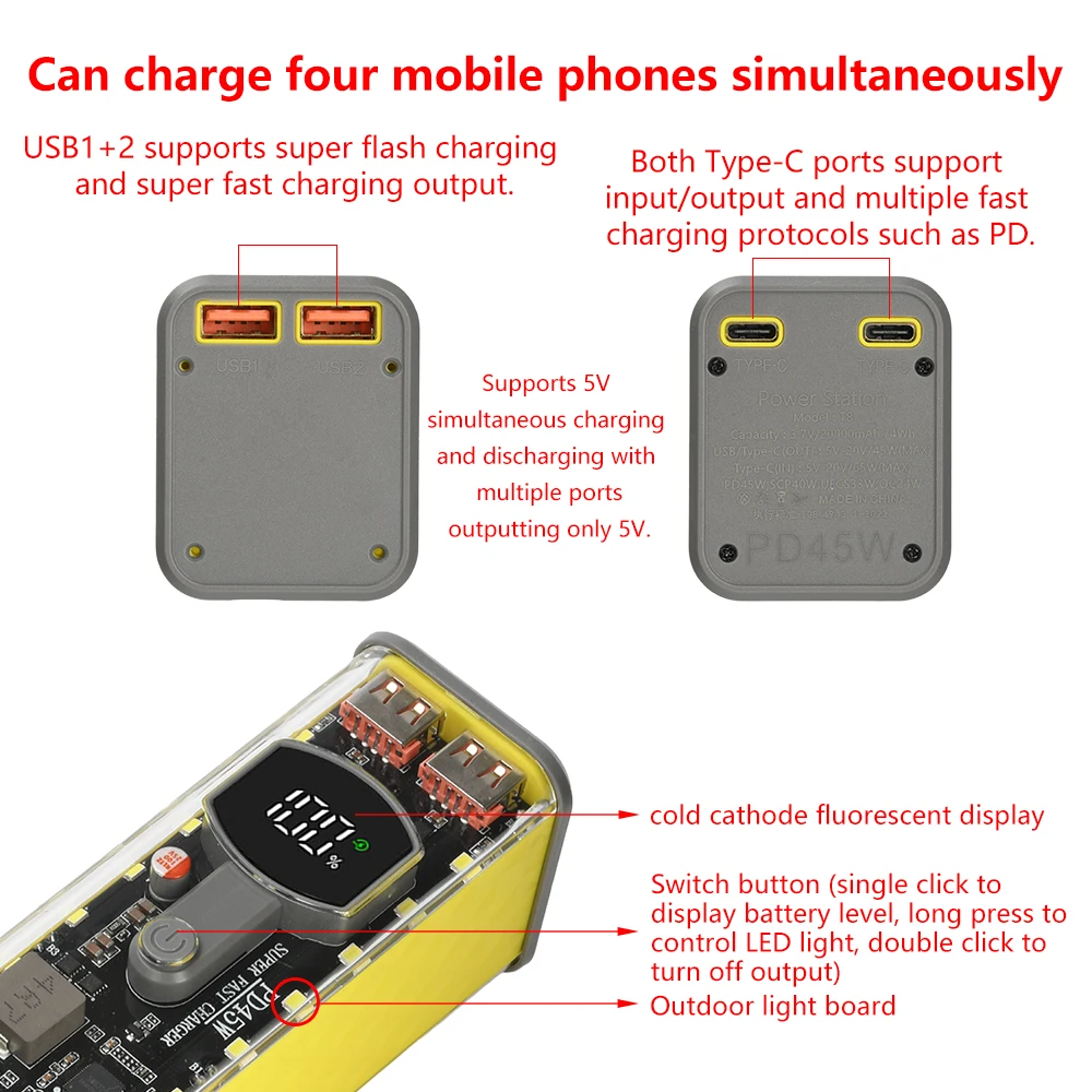 Caja de almacenamiento de batería 18650 21700 PD 22,5 W 45 W caja recargable de carga súper rápida DIY carcasa de cargador 8X 4X