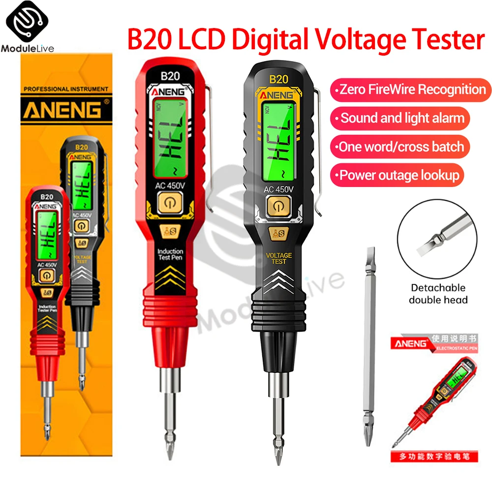 Probador de voltaje Digital B20, pluma medidora, destornillador de doble cabeza, bolígrafo de prueba de circuito de inducción eléctrica LED, herramienta de prueba de voltímetro