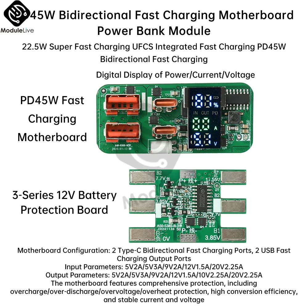 PD45W carga rápida bidireccional móvil 3S Placa de protección de batería banco de energía módulo DIY tubo Digital con Control de temperatura