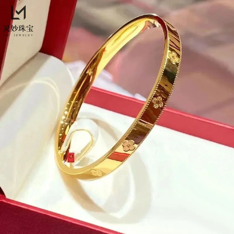 Pulsera de joyería de lujo de oro real 9999 de 24k, pulsera de moda de caleidoscopio sólido para novia