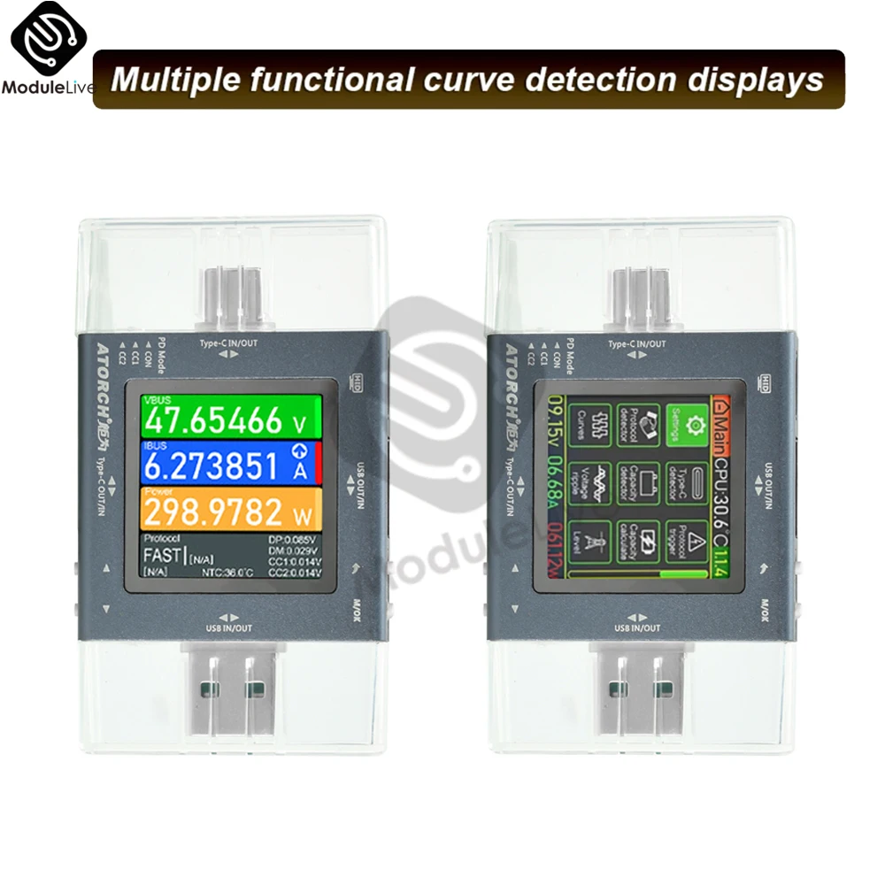 DC0-50V 6.5A Monitor de capacidad del cargador de teléfono móvil USB + medidor de corriente de voltaje tipo C TU13 probador de potencia protocolo de carga rápida PD